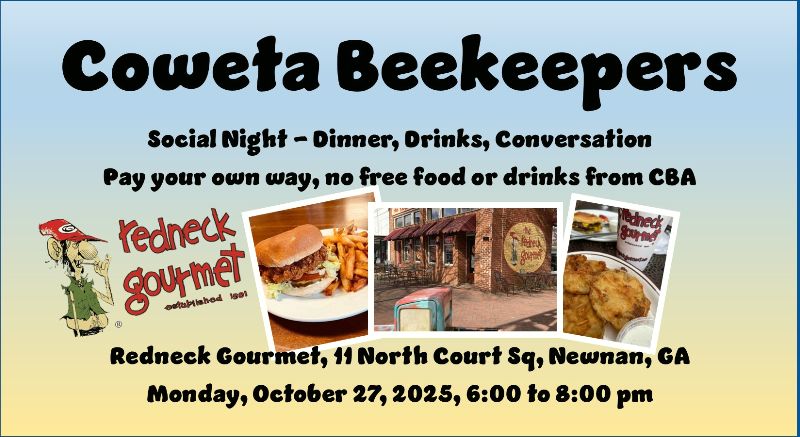 Join us at Redneck Gourmet for dinner, drinks and conversation on Monday, August 26. Arrive when you can. You pay for your own dinner/drinks.